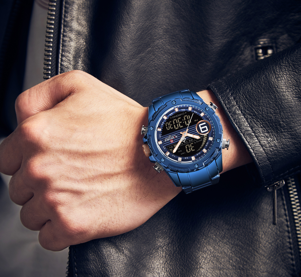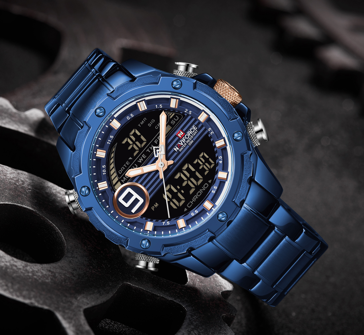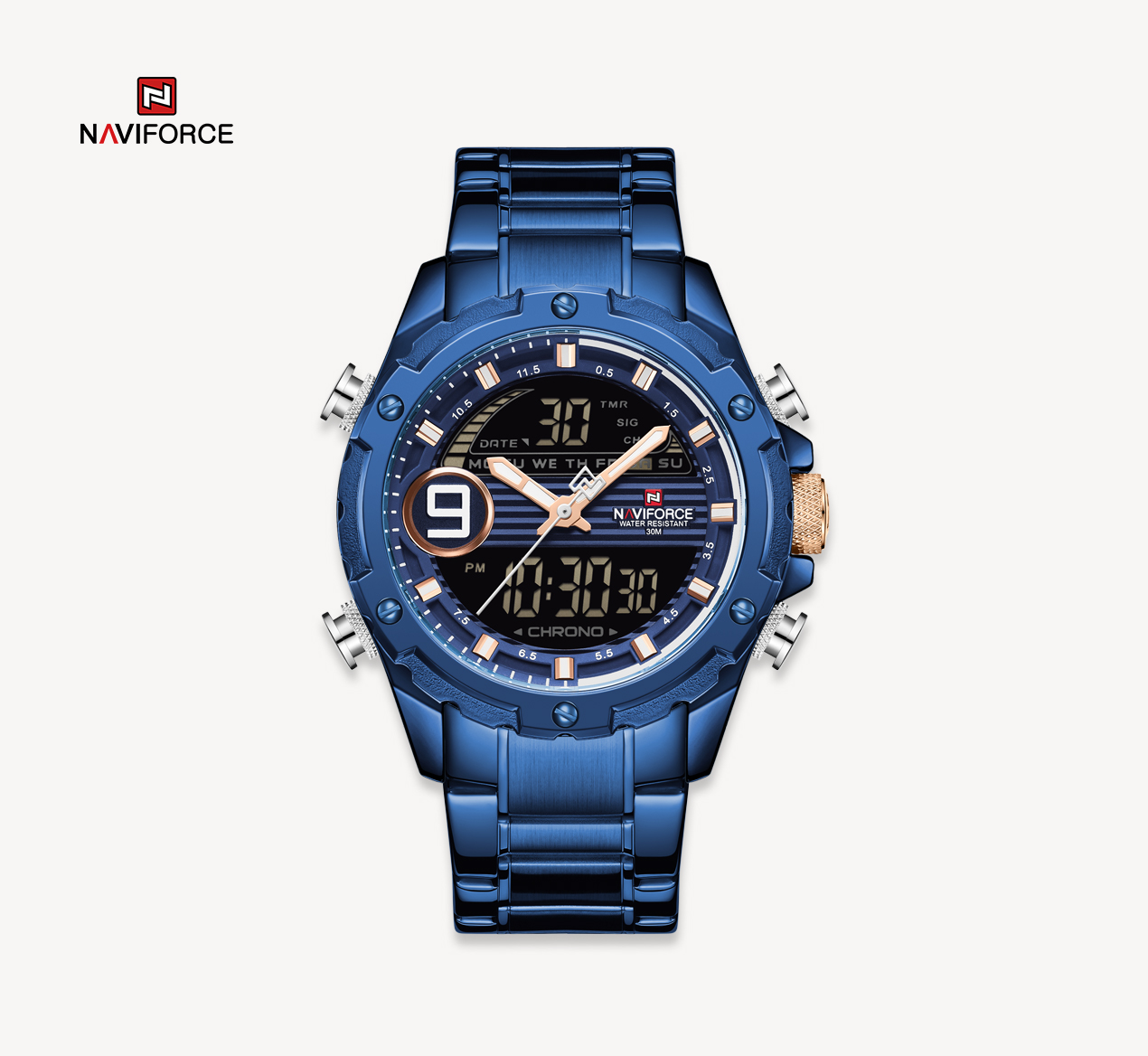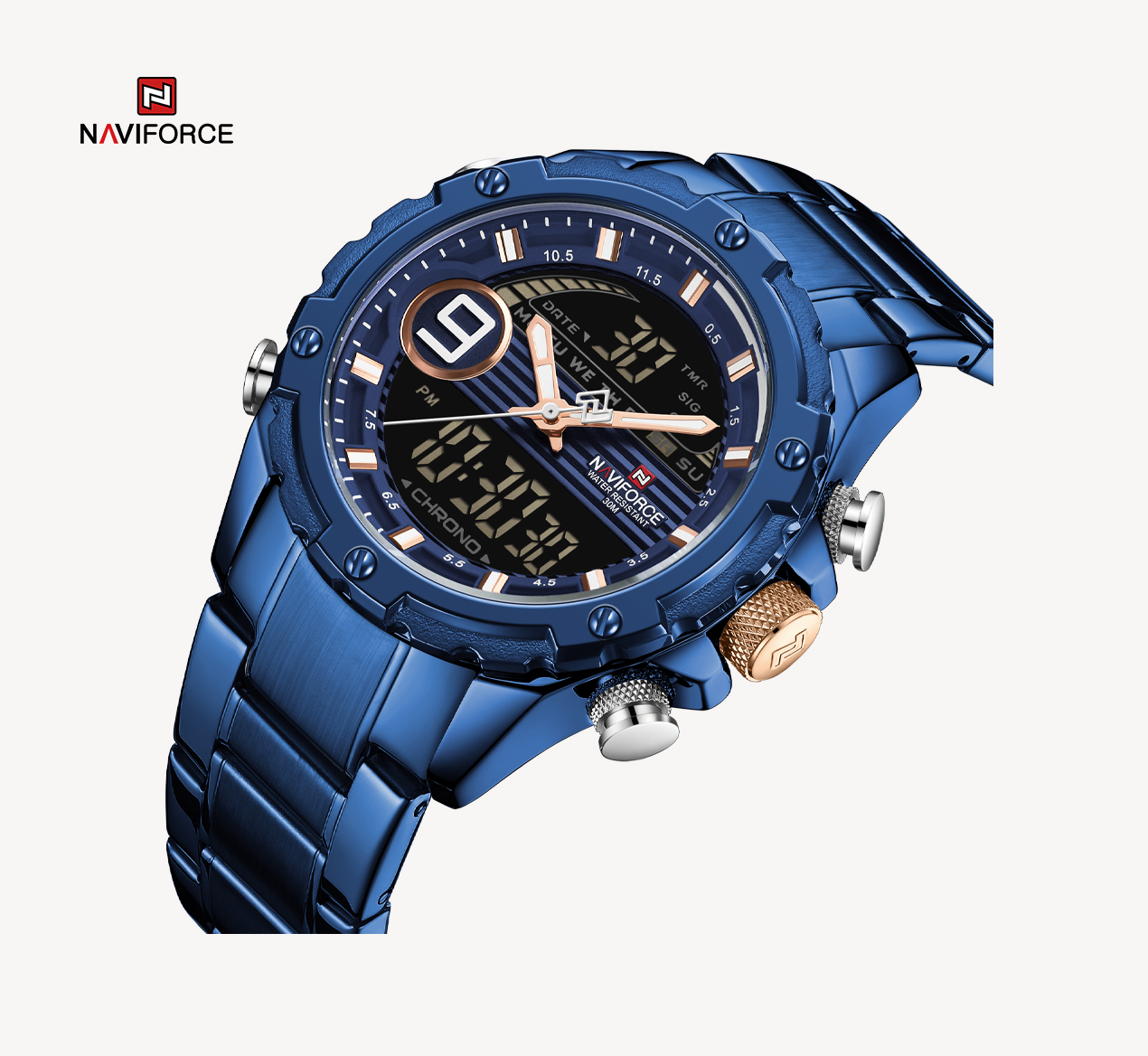 NAVIFORCE Business Casual Watches for Men Military Digital Sport Quartz Waterproof Stainless Steel Wristwatch NF9146S