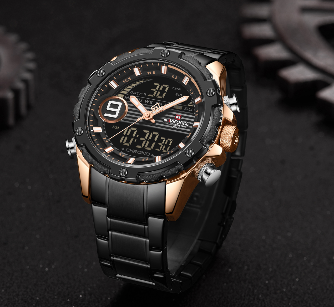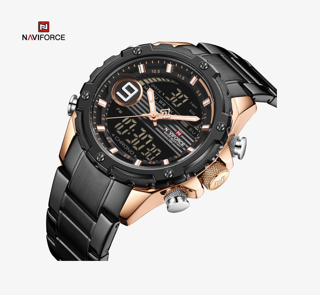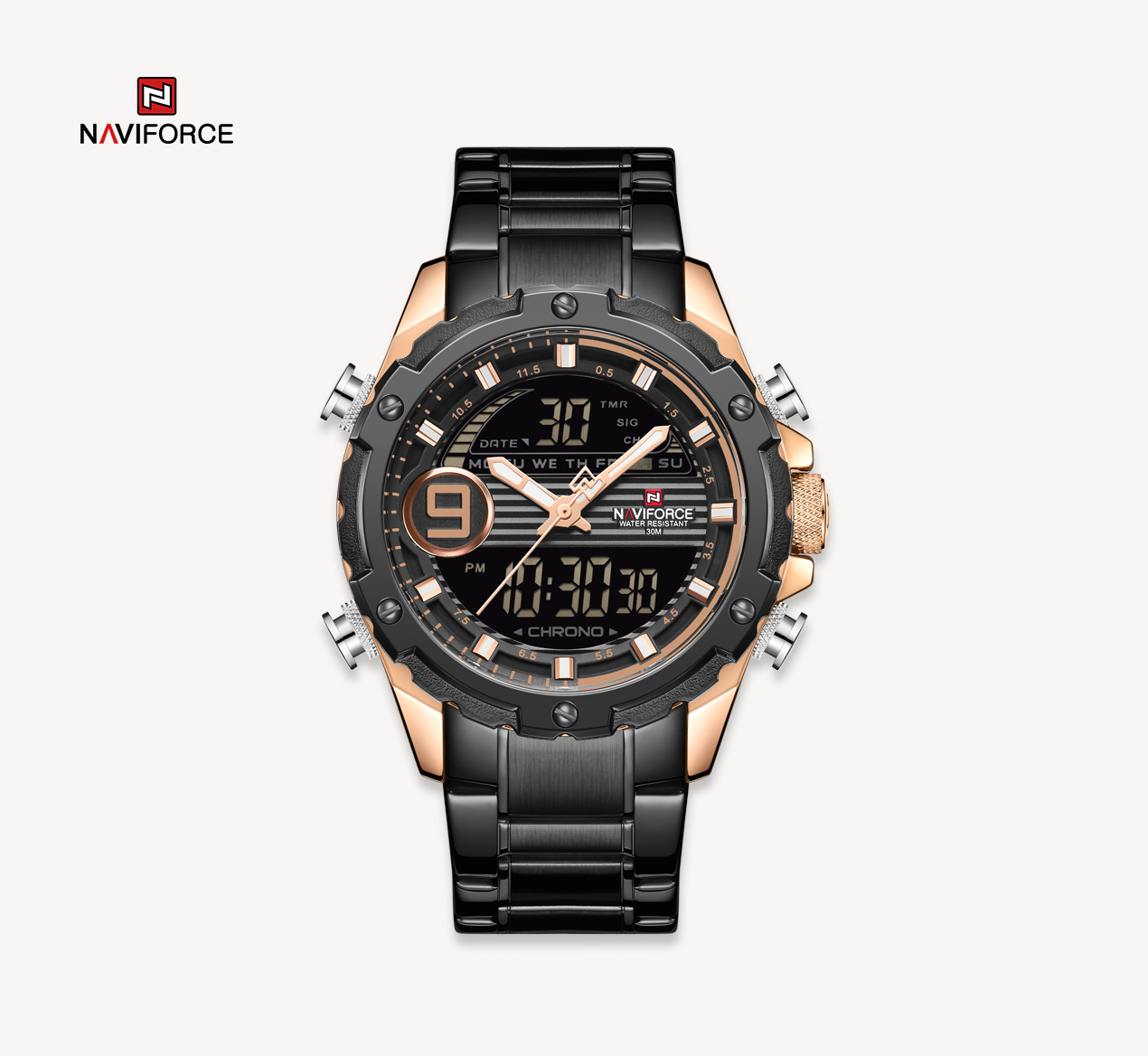NAVIFORCE Business Casual Watches for Men Military Digital Sport Quartz Waterproof Stainless Steel Wristwatch NF9146S