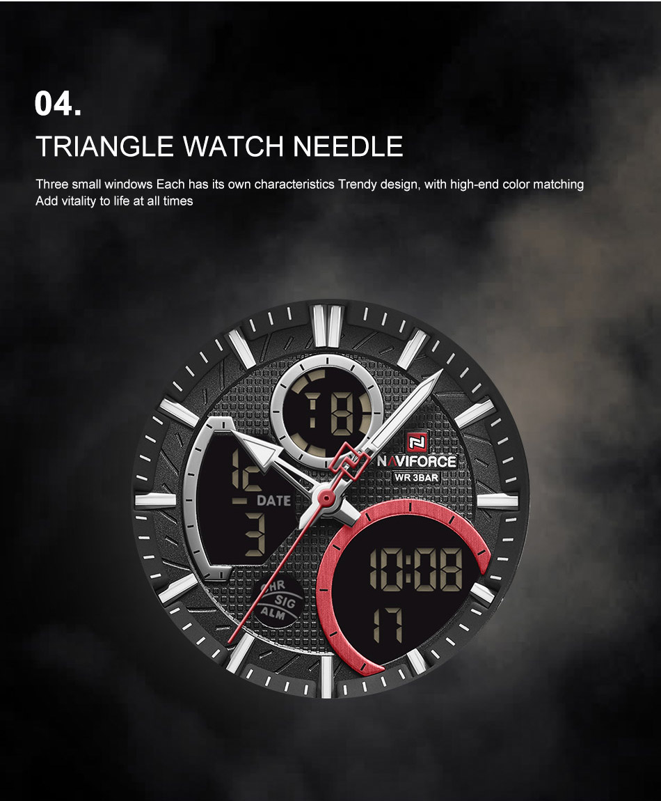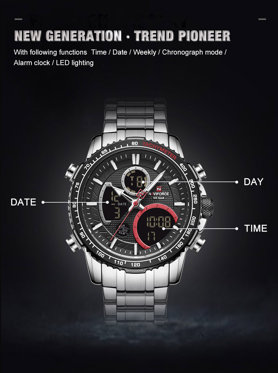 NAVIFORCE Men Digital Sports Watches Multifunction Chronograph Watch Quartz Waterproof Stainless Steel Wristwatch NF9182