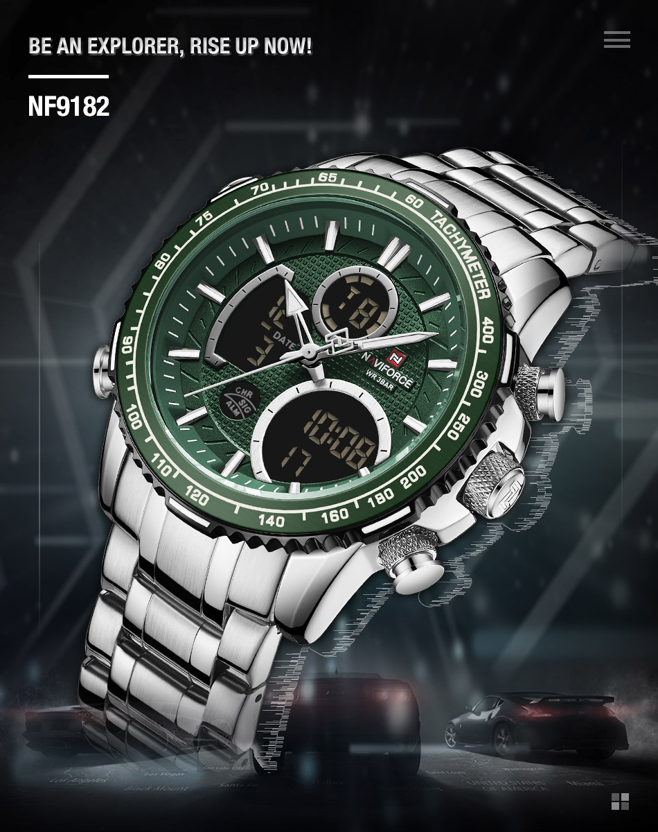 NAVIFORCE Men Digital Sports Watches Multifunction Chronograph Watch Quartz Waterproof Stainless Steel Wristwatch NF9182
