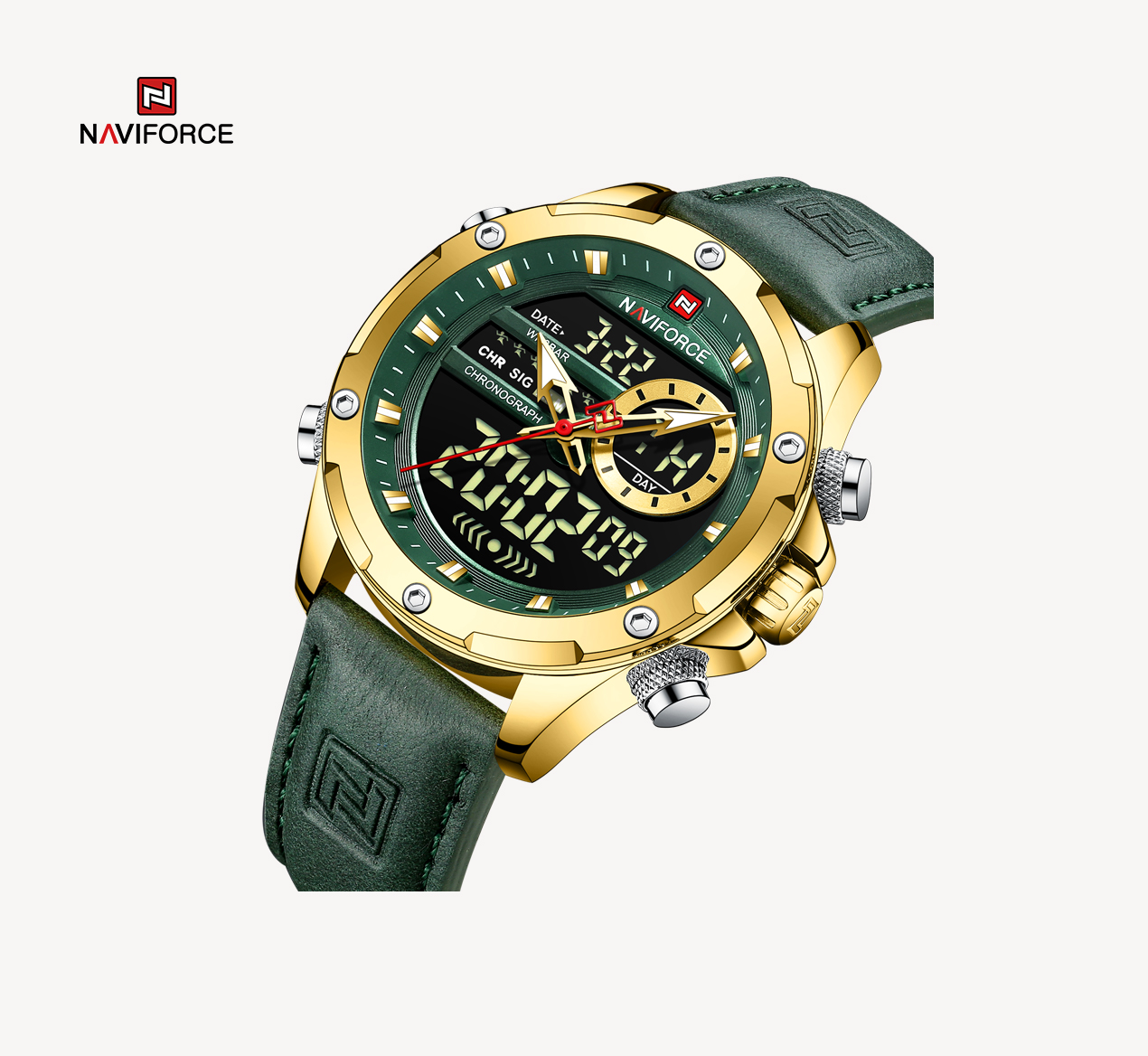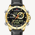 NAVIFORCE Men Luxury Watches Fashion Genuine Leather Calendar LCD Display Waterproof Quartz Wristwatch NF9208