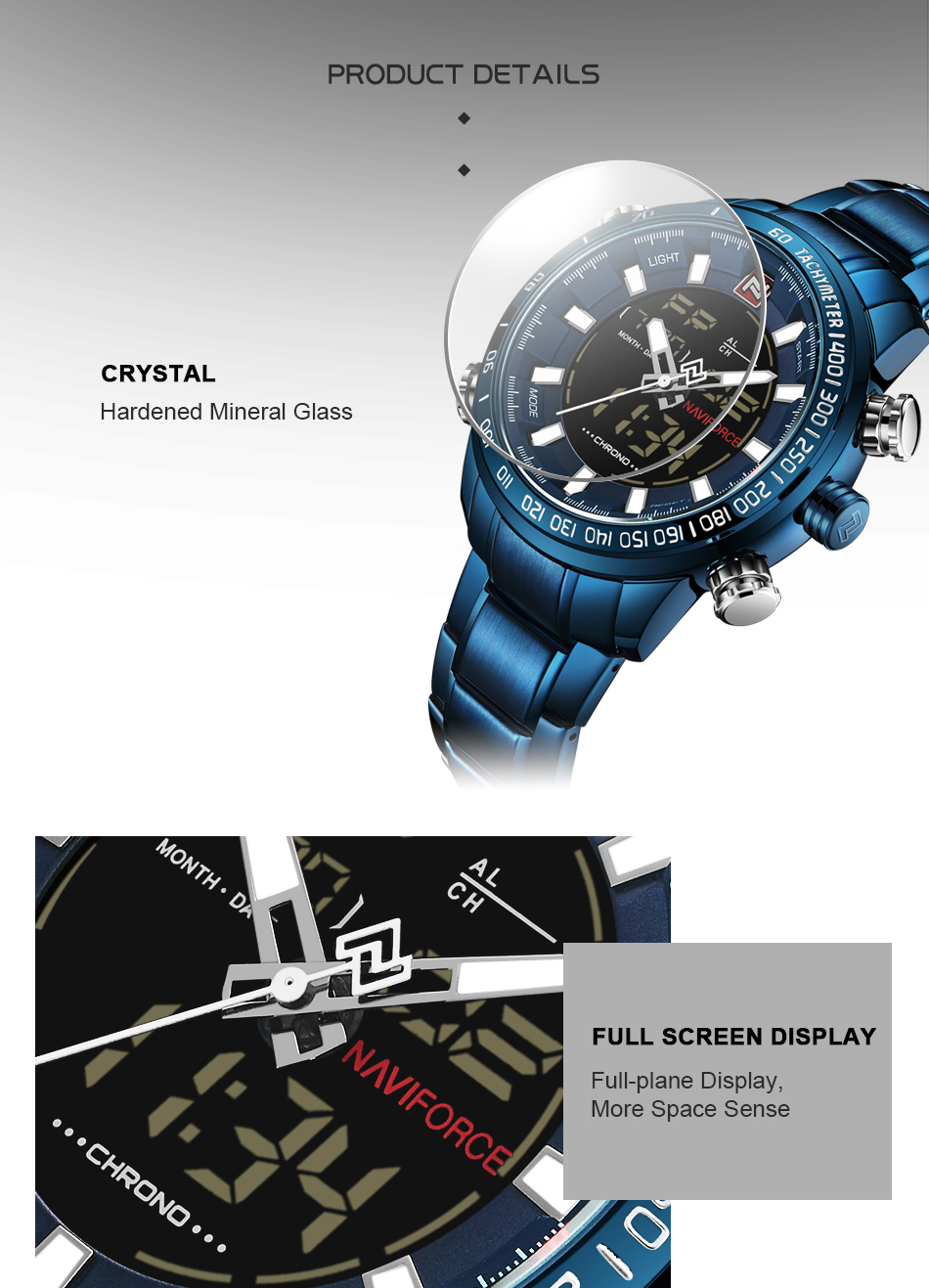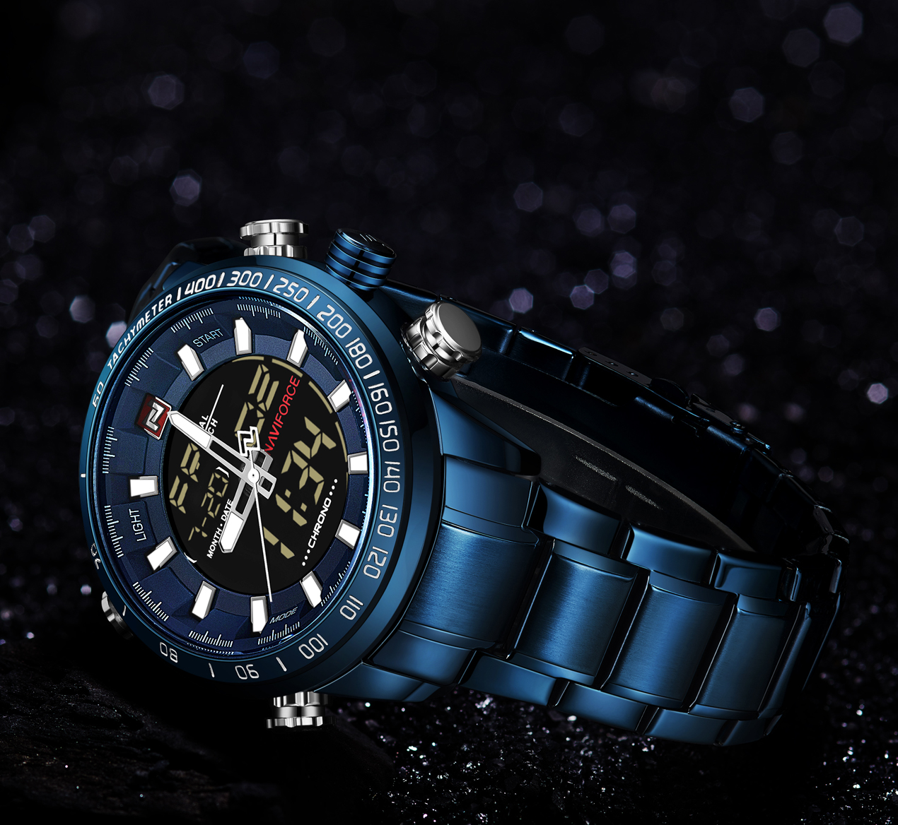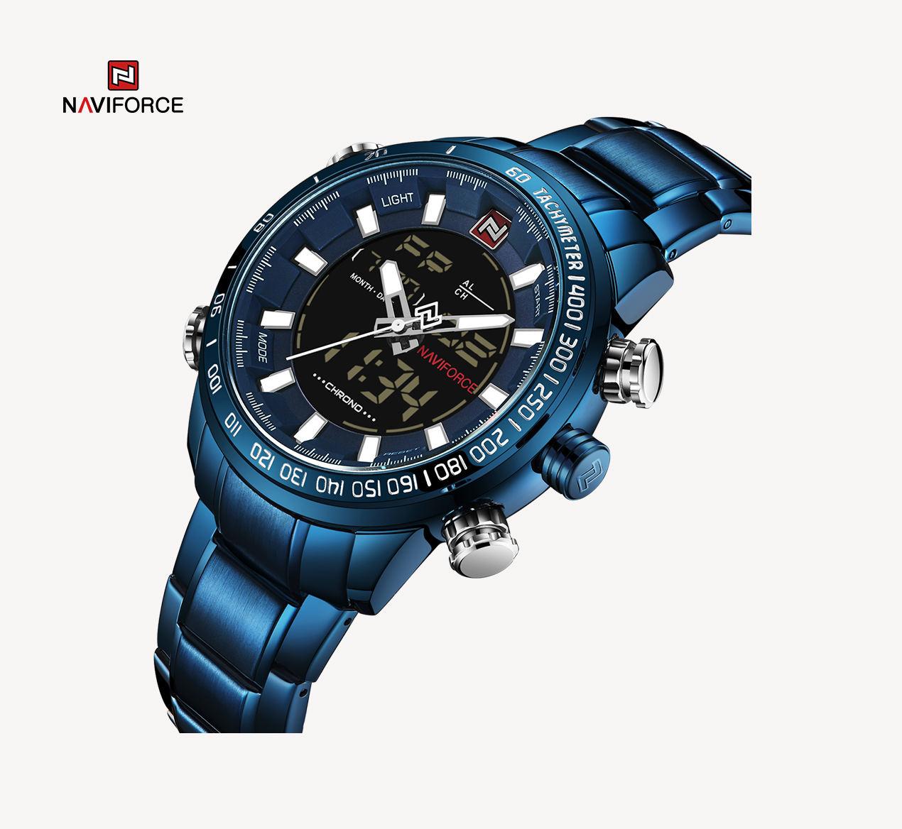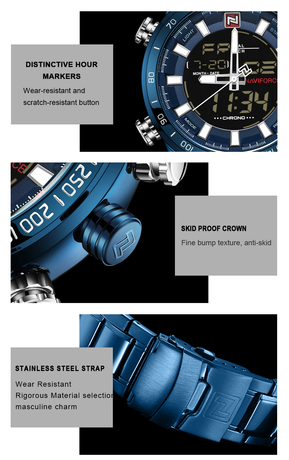 NAVIFORCE Top Brand Military Sport Watches Mens LED Analog Digital Alarm Stainless Steel Quartz WristWatch NF9093