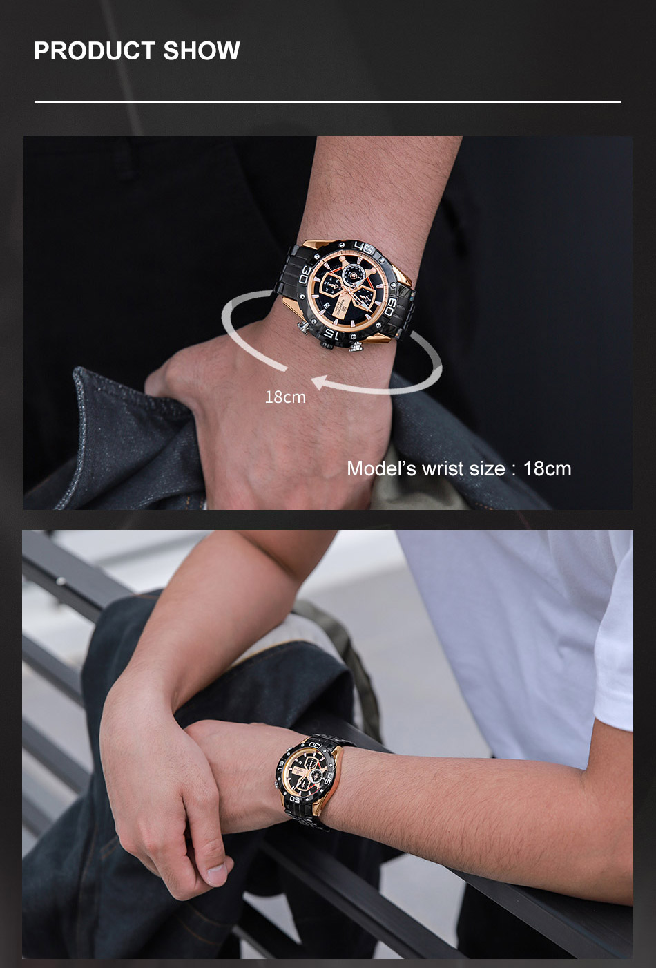 High-quality material: Hardened mineral glass watch mirror, zinc alloy watch case, high-quality stainless steel watch band, environmentally friendly vacuum ion plating process