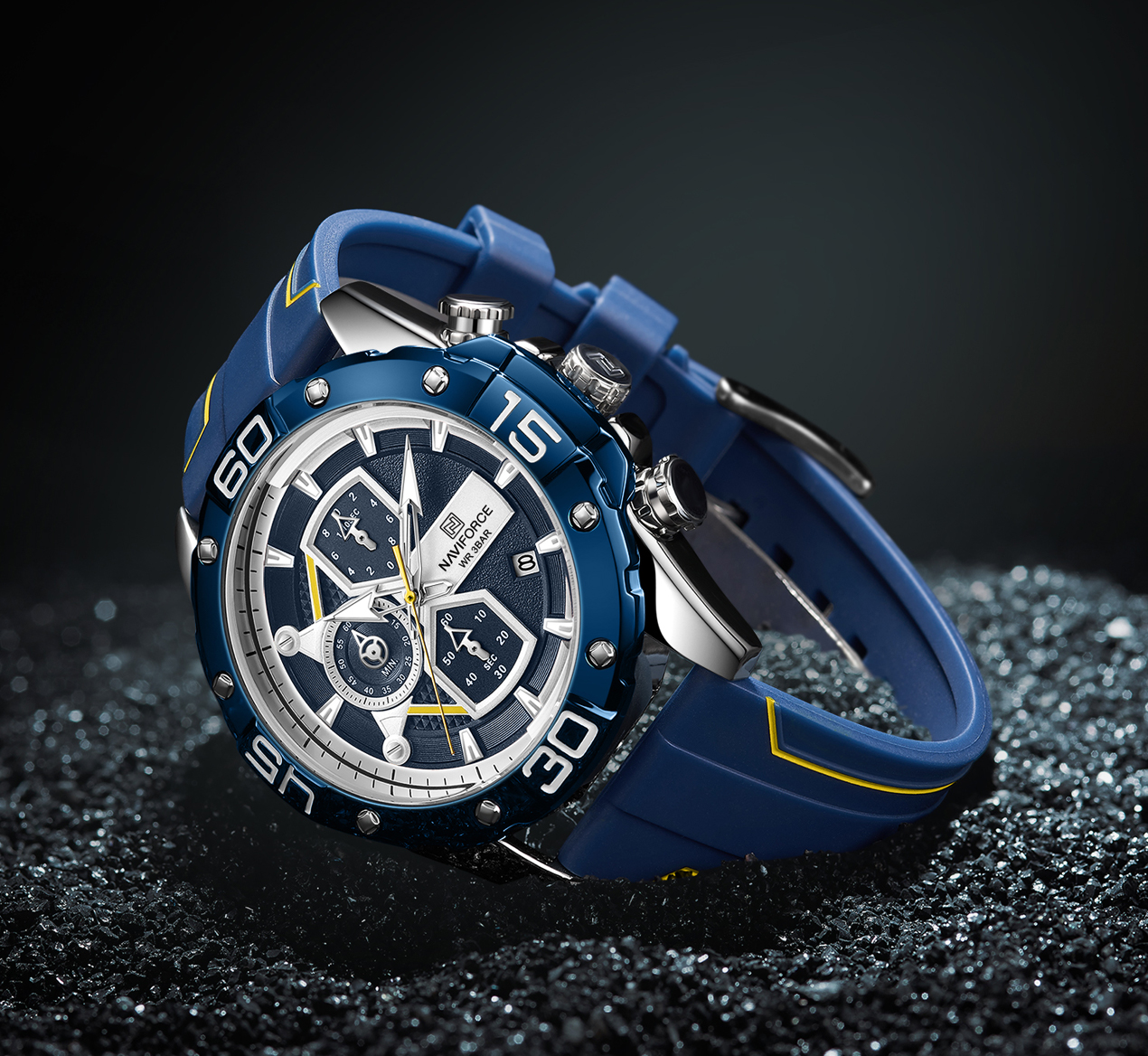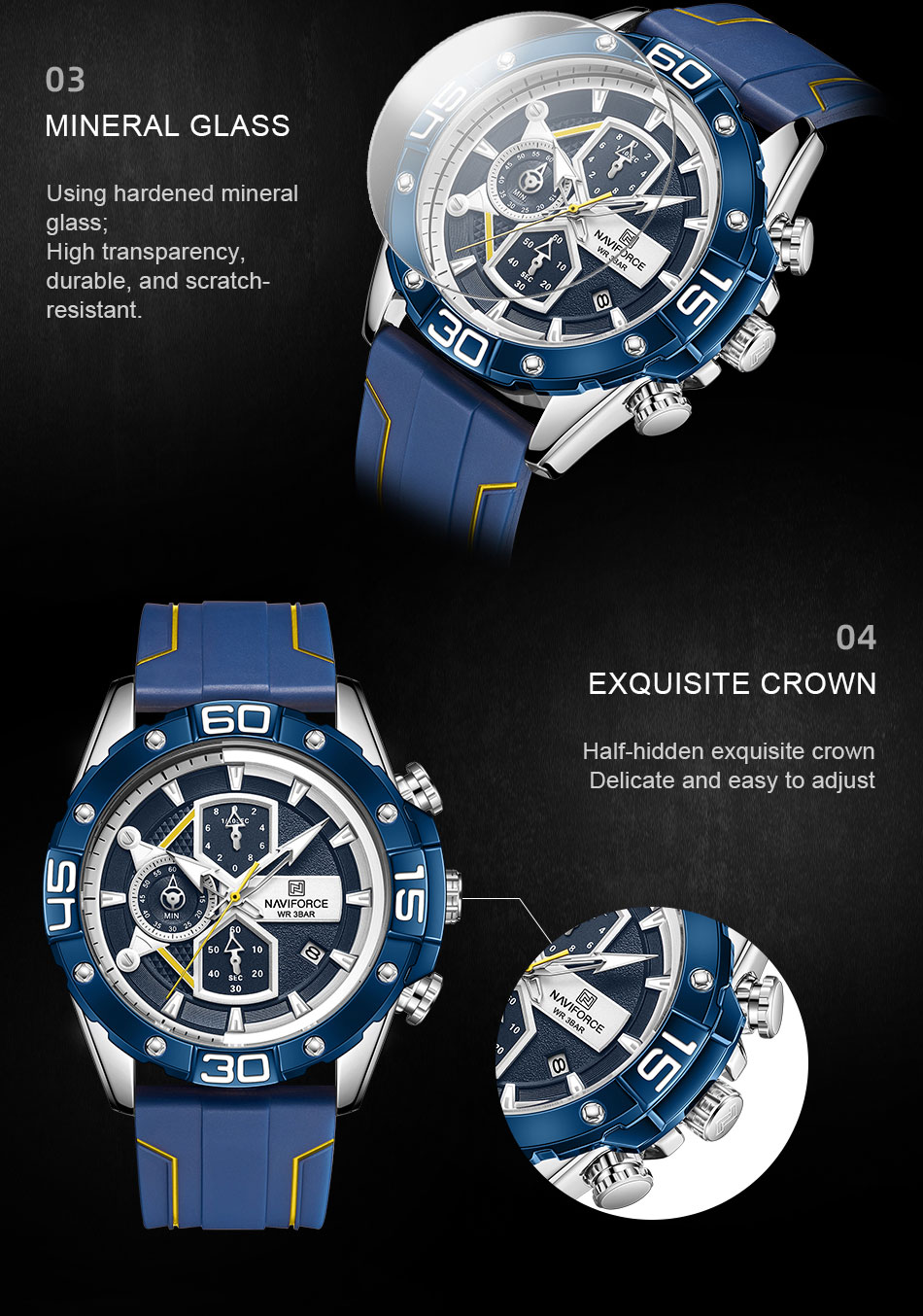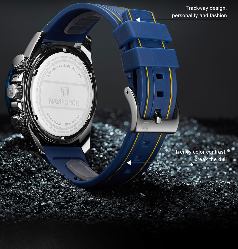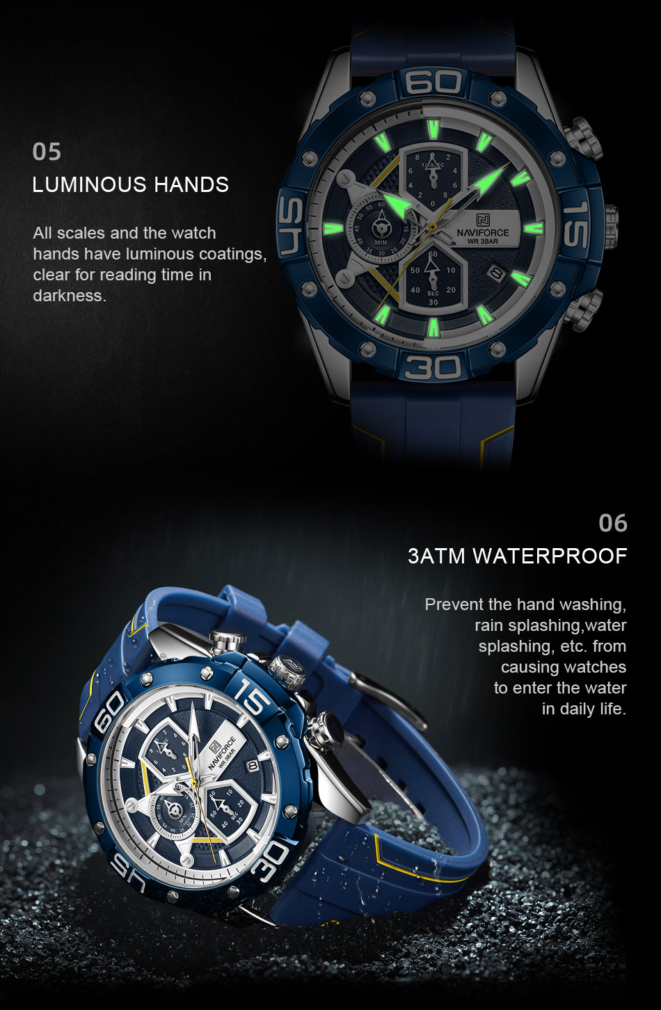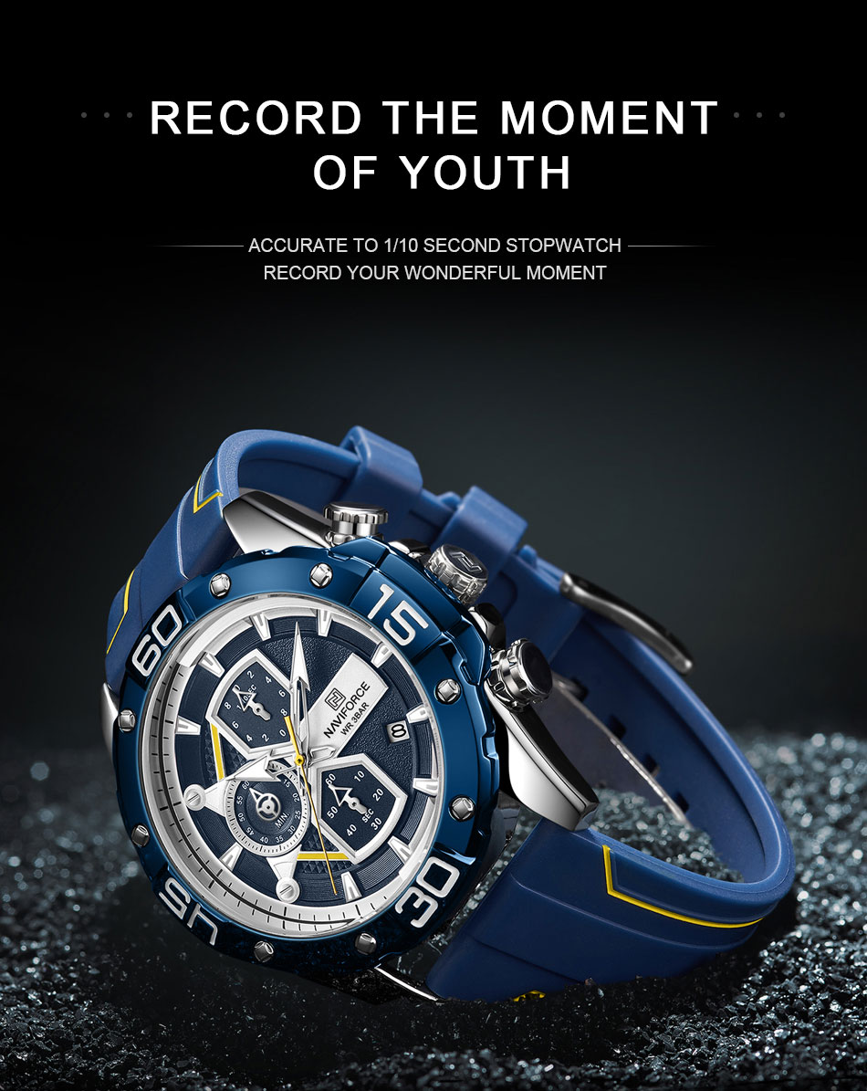 NAVIFORCE Sport Watches for Men Military Quartz Chronograph Waterproof Silicone Strap Wristwatch NF8018T