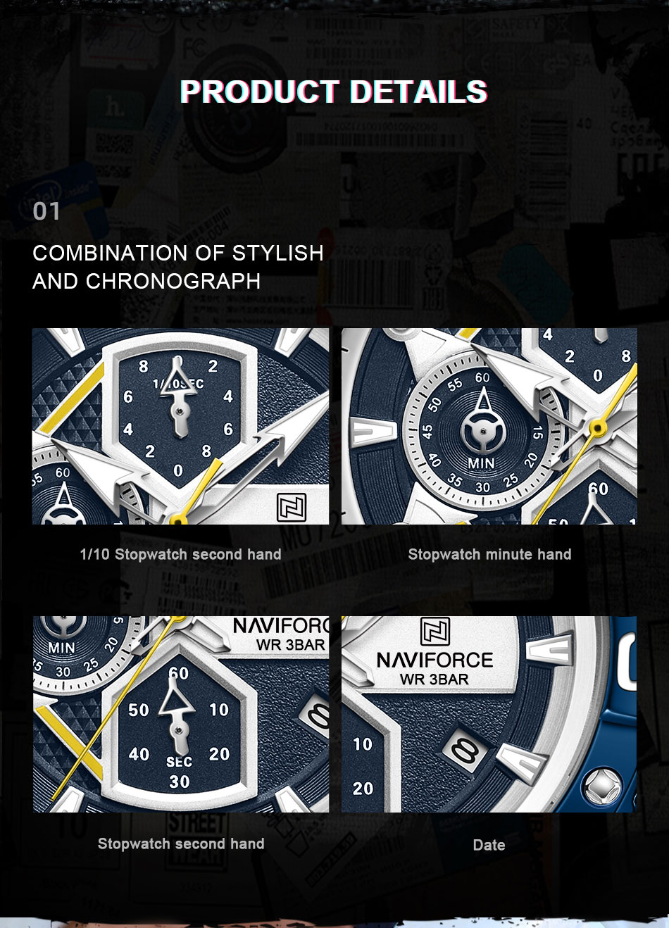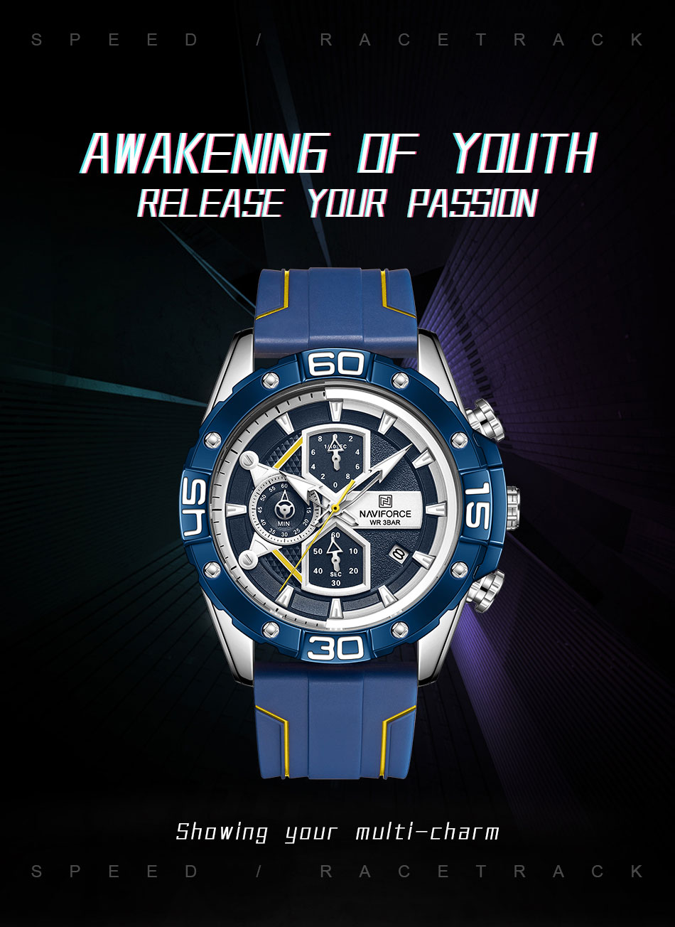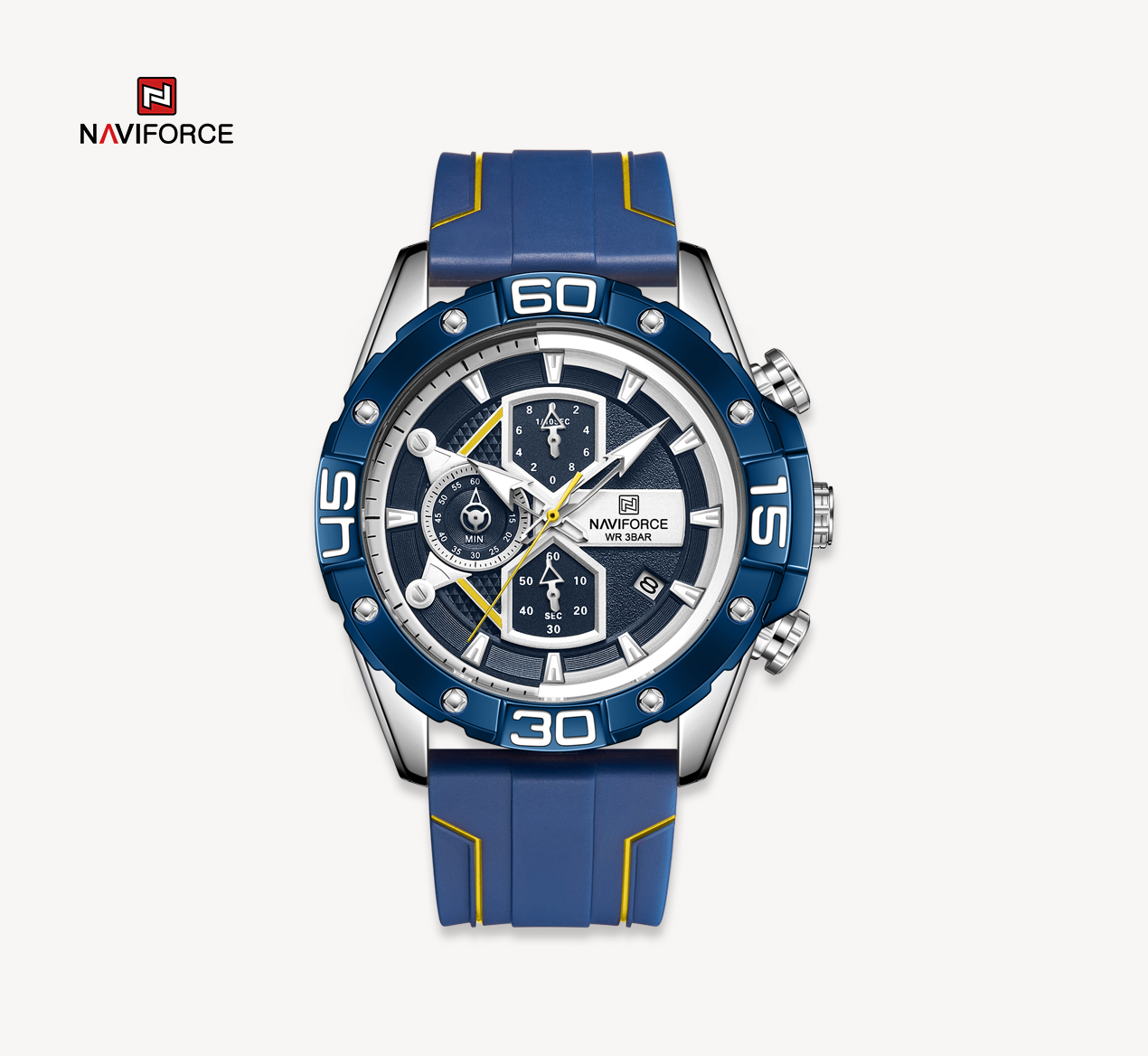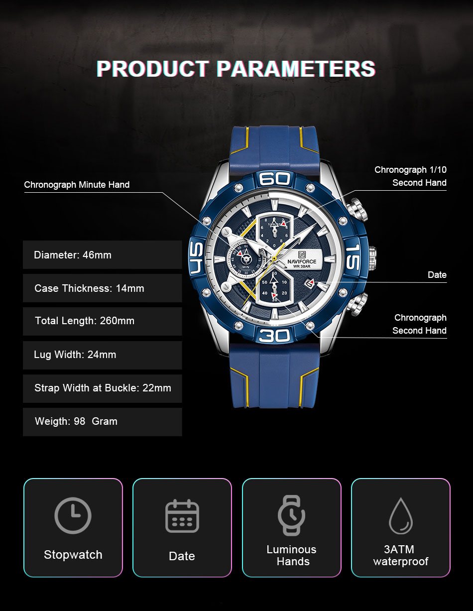NAVIFORCE Sport Watches for Men Military Quartz Chronograph Waterproof Silicone Strap Wristwatch NF8018T