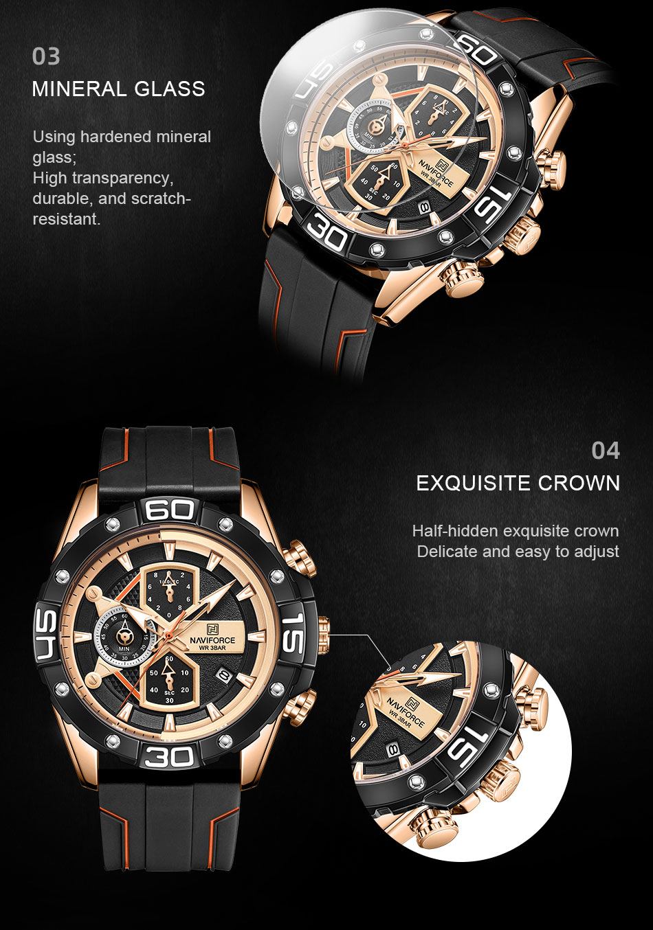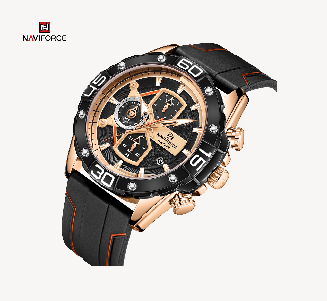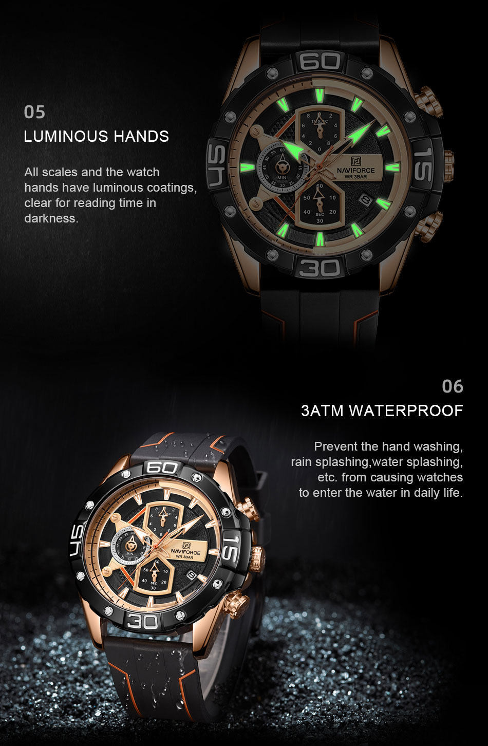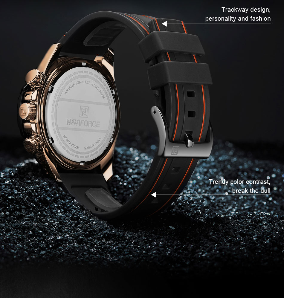 NAVIFORCE Sport Watches for Men Military Quartz Chronograph Waterproof Silicone Strap Wristwatch NF8018T
