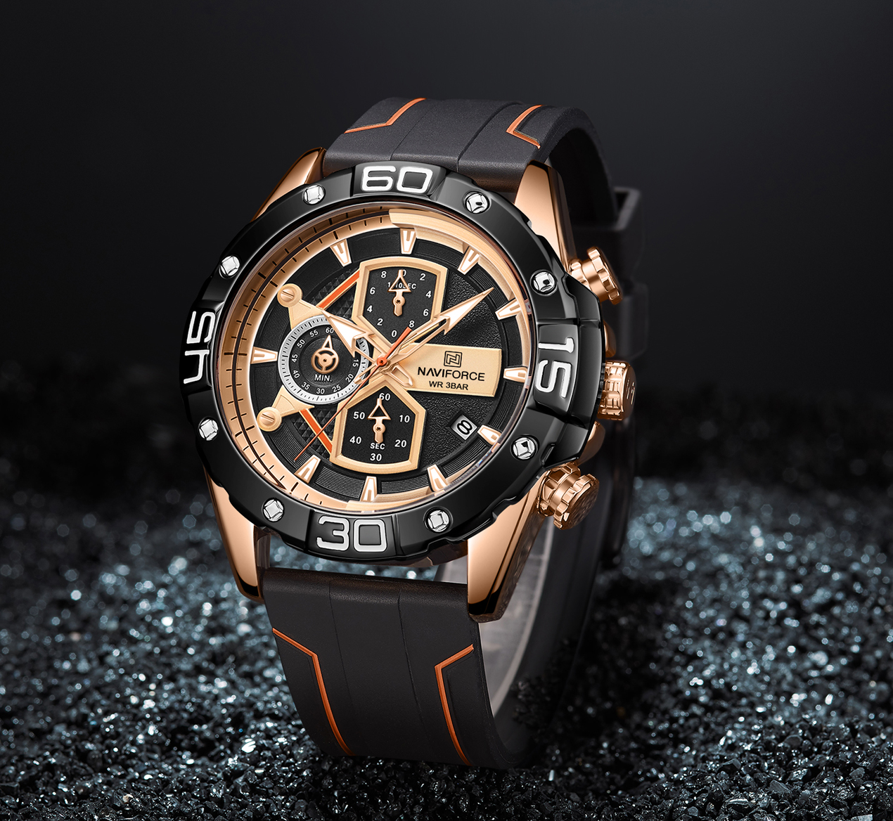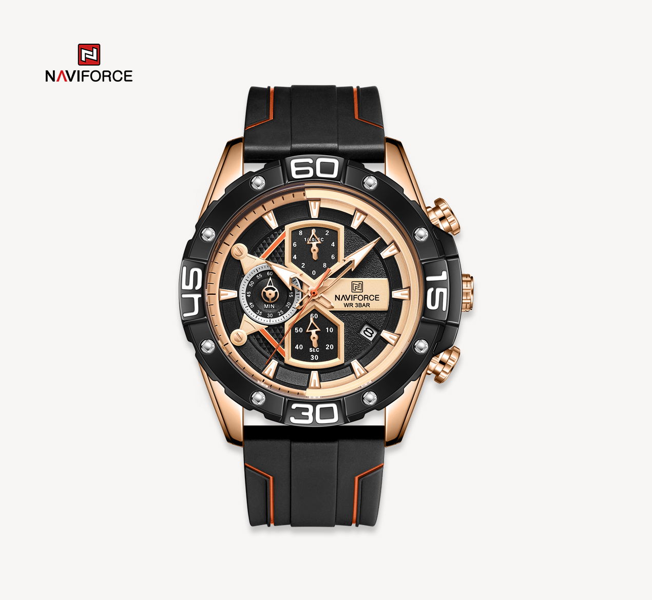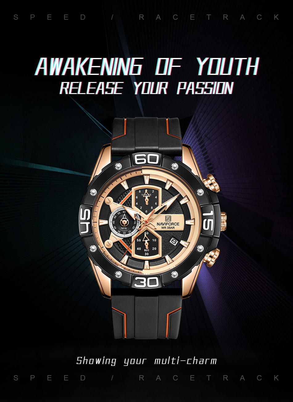 NAVIFORCE Sport Watches for Men Military Quartz Chronograph Waterproof Silicone Strap Wristwatch NF8018T