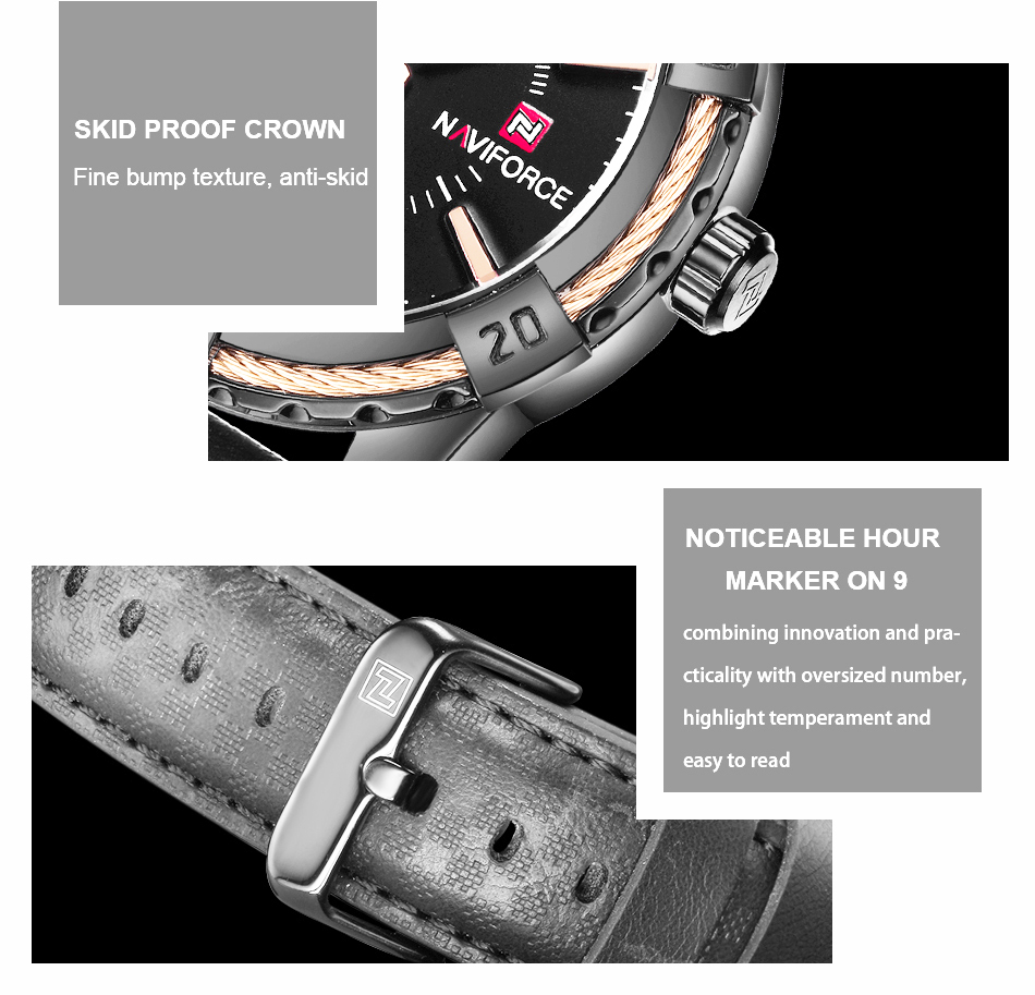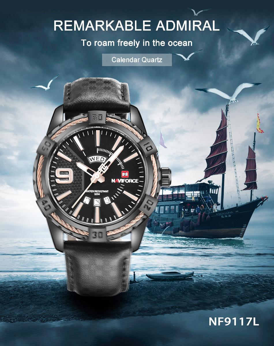 NAVIFORCE Mens Watch Gold Luxury Sport Waterproof Military WristWatch Business Casual Leather Strap Watches for Men NF9117L