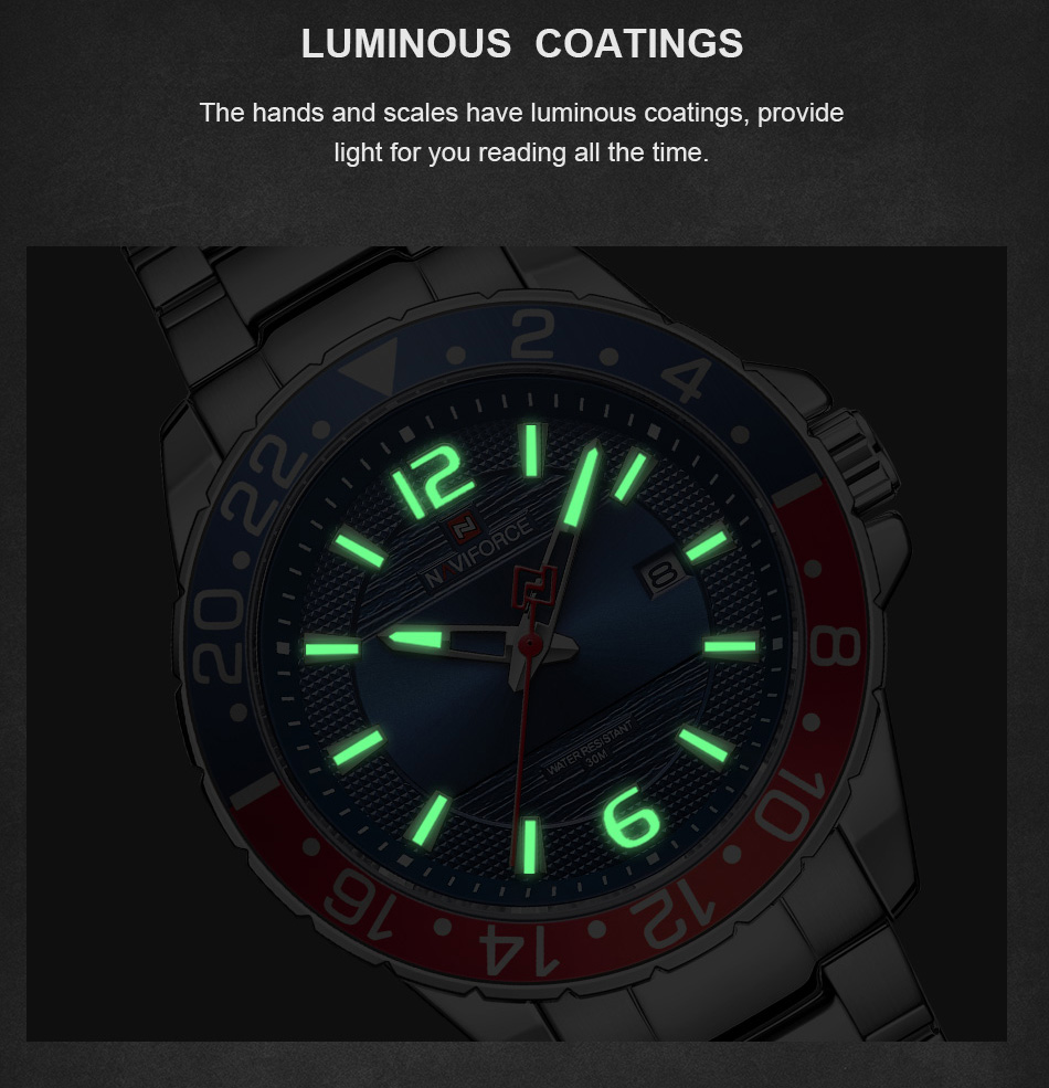 NAVIFORCE Men Luxury Watches Stainless Steel Calendar Waterproof Quartz Wristwatch NF9192