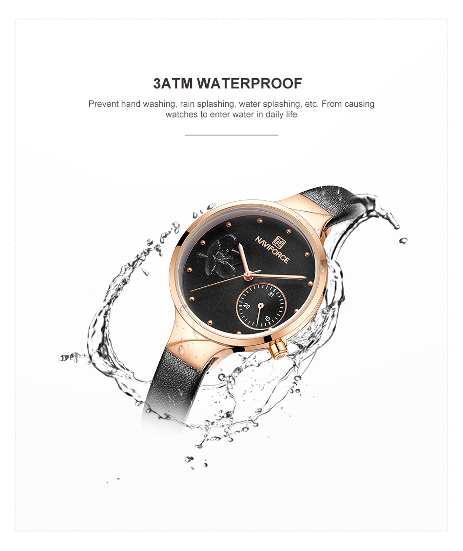 NAVIFORCE Fashion Women Watch Luxury Ladies Wristwatch Genuine Leather Bracelet Classic Female Watches NF5001L