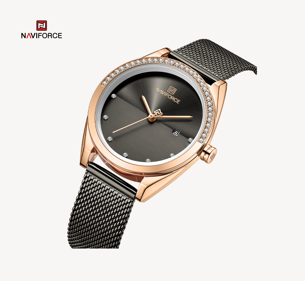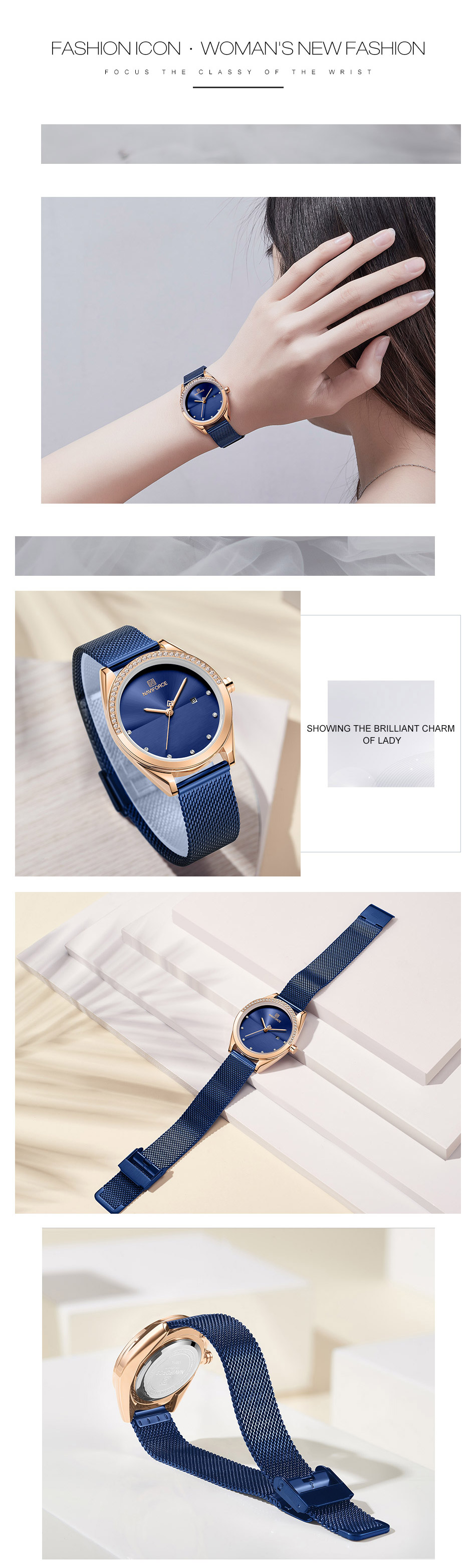 NAVIFORCE Luxury Fashion Simple Diamond Women Watch Stainless Steel Waterproof Wristwatches with Date NF5015