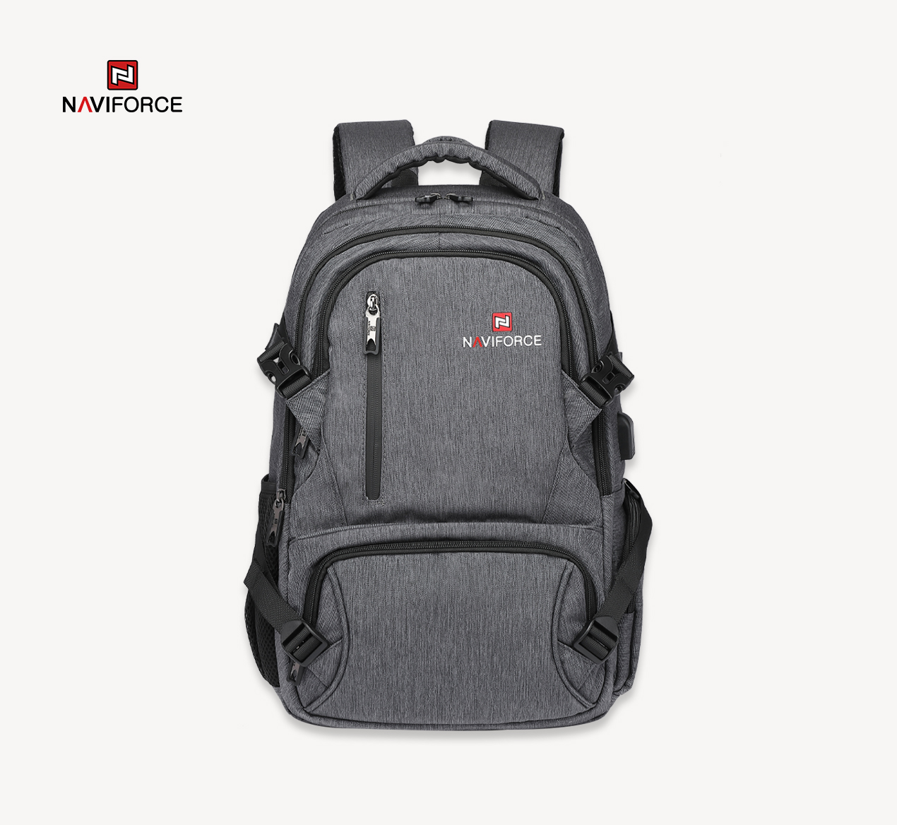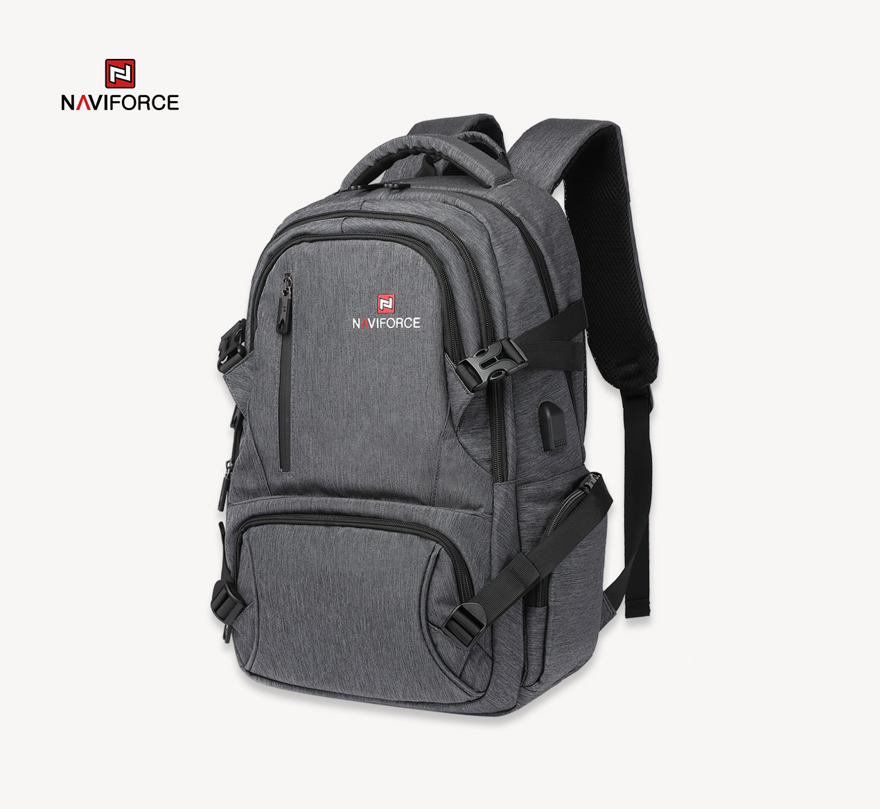NAVIFORCE Quality Nylon Waterproof Travel Backpacks Fashion Multifunction Large Capacity and USB Hole Bag Backpack NFB6806