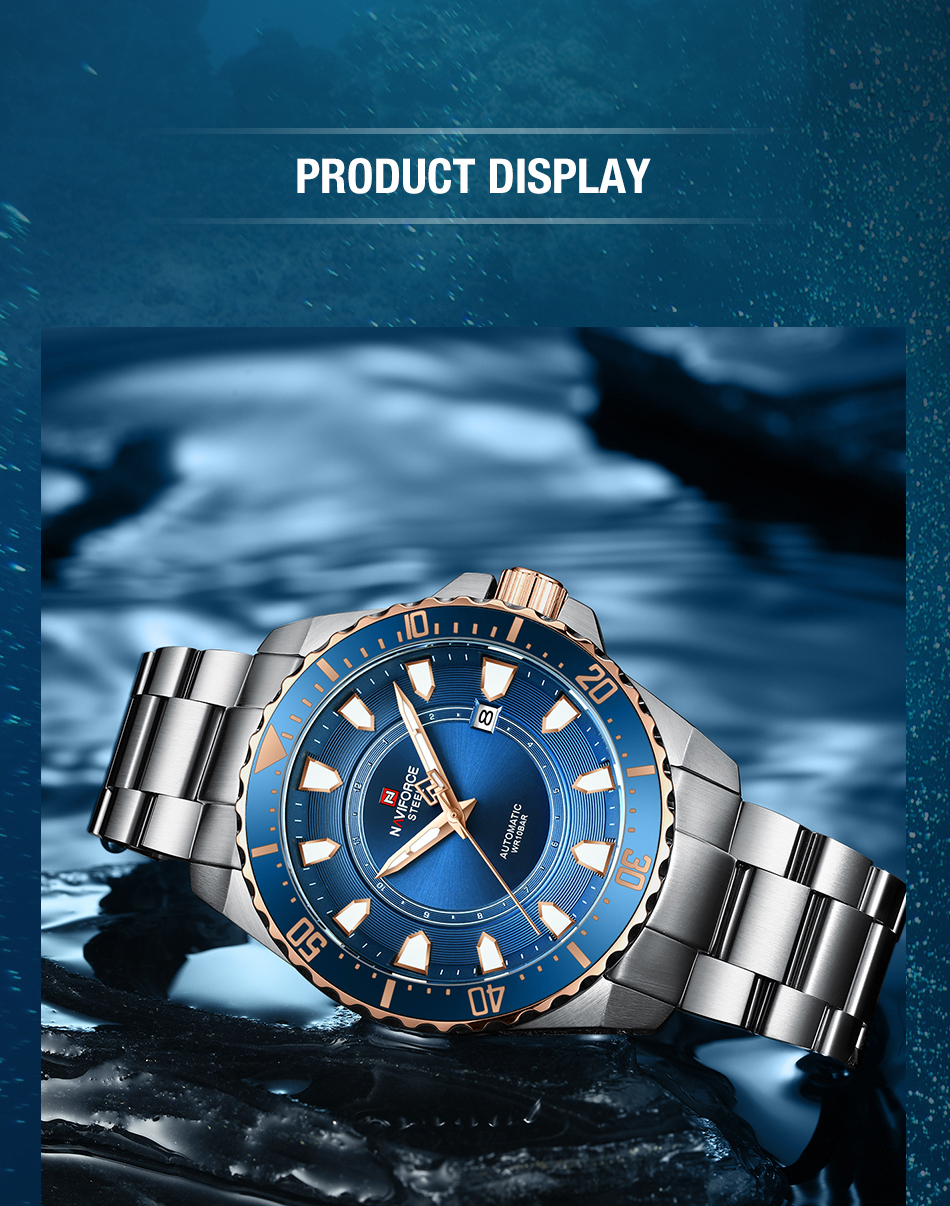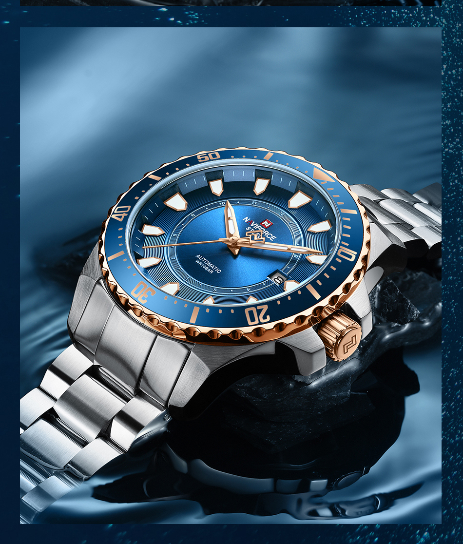 NAVIFORCE Men Luxury Automatic Mechanical Wristwatch All Steel Waterproof Watch NFS1004