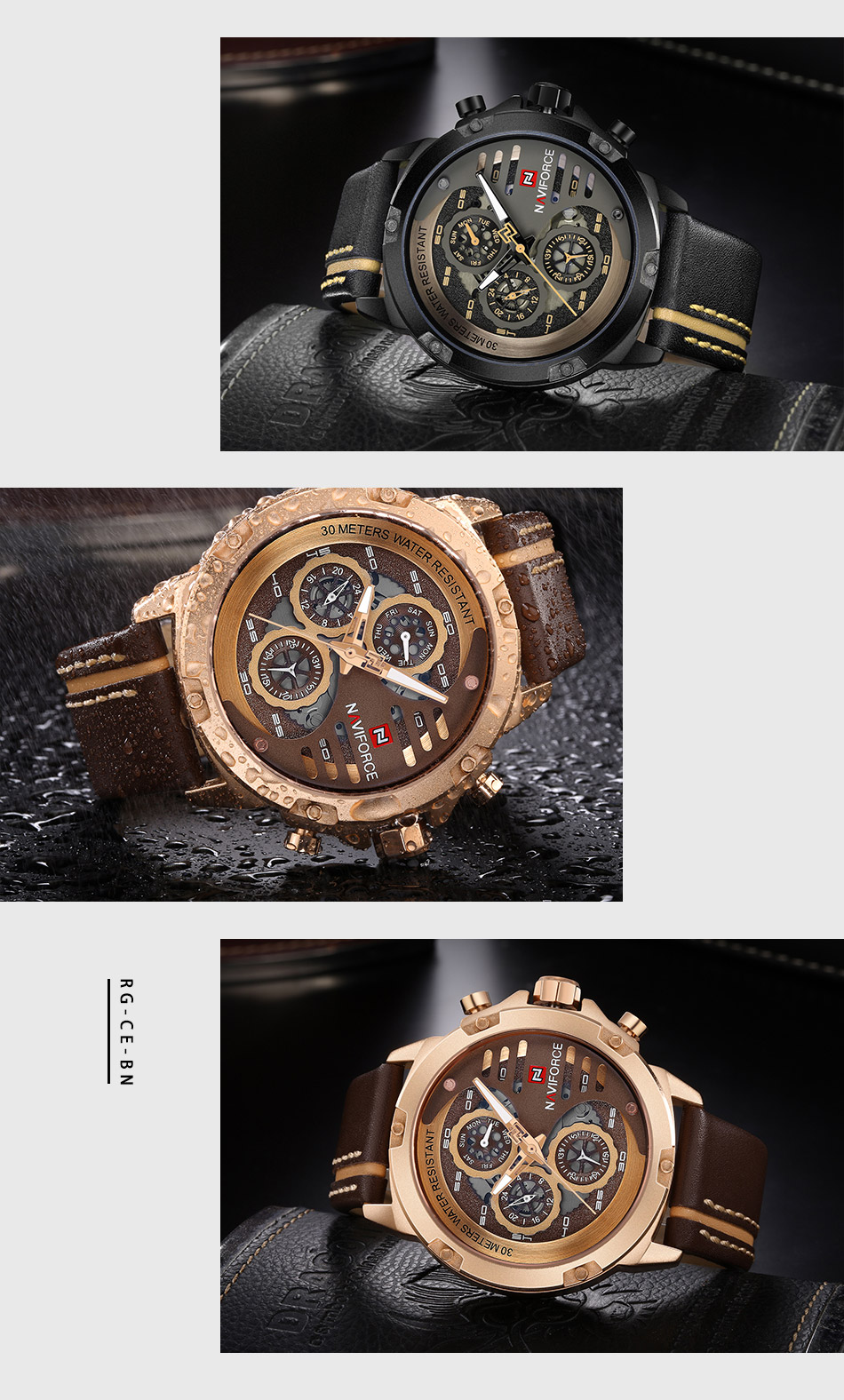 NAVIFORCE military waterproof watch, the perfect combination of sports and leisure, stylish big face appearance and multi-function, perfect match with jeans, T-shirts or suits;