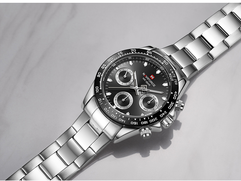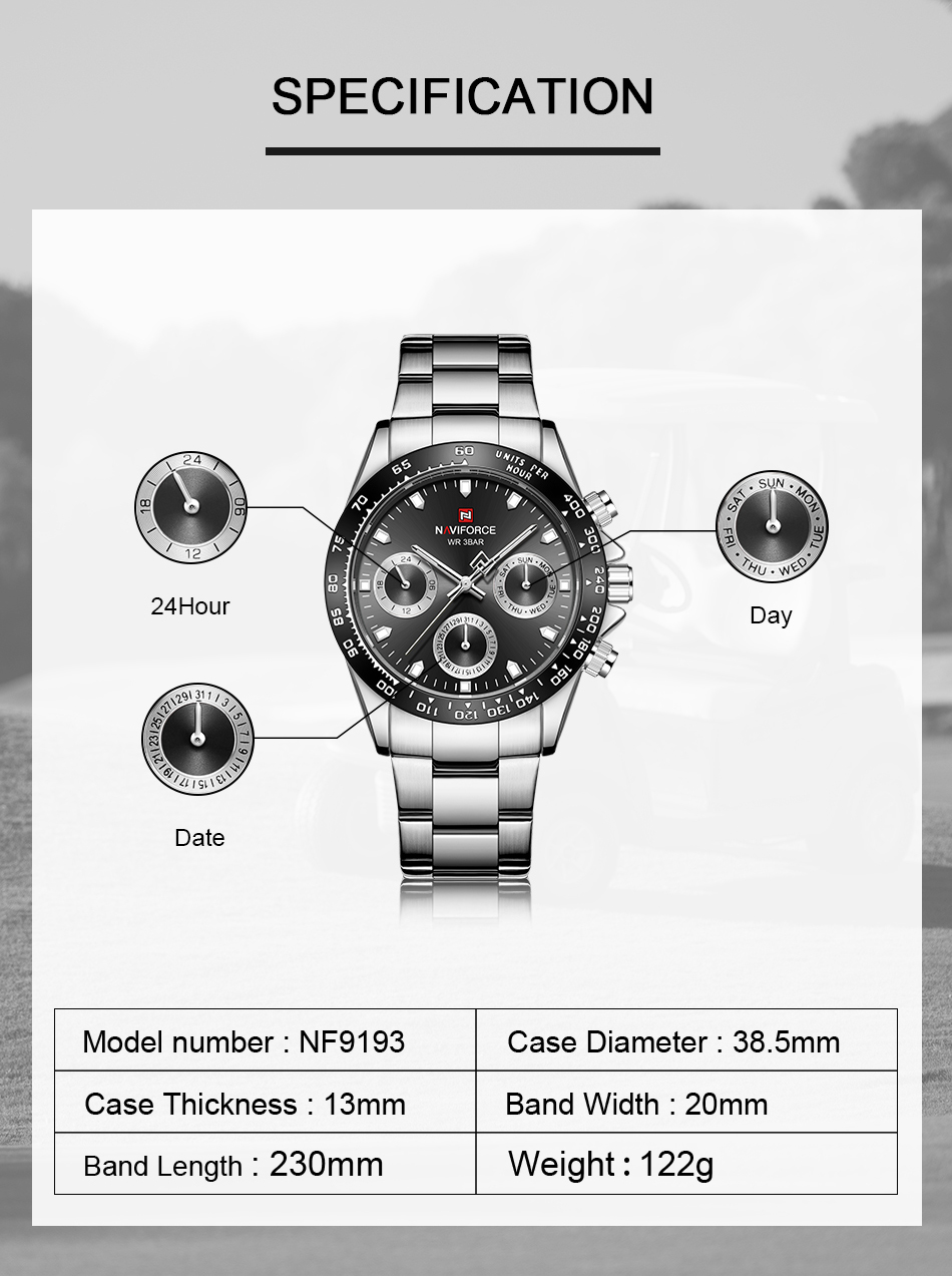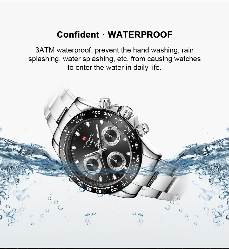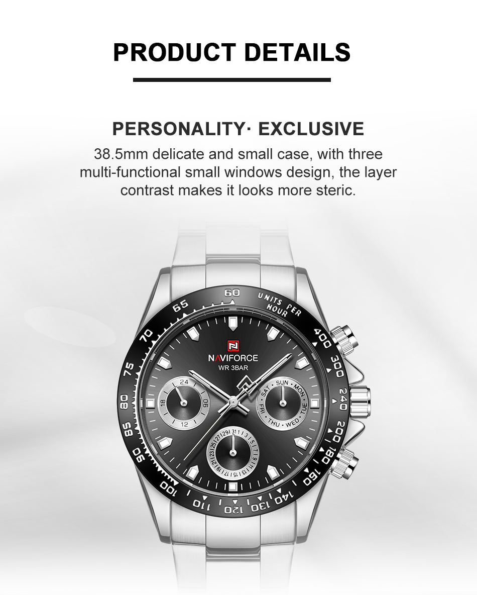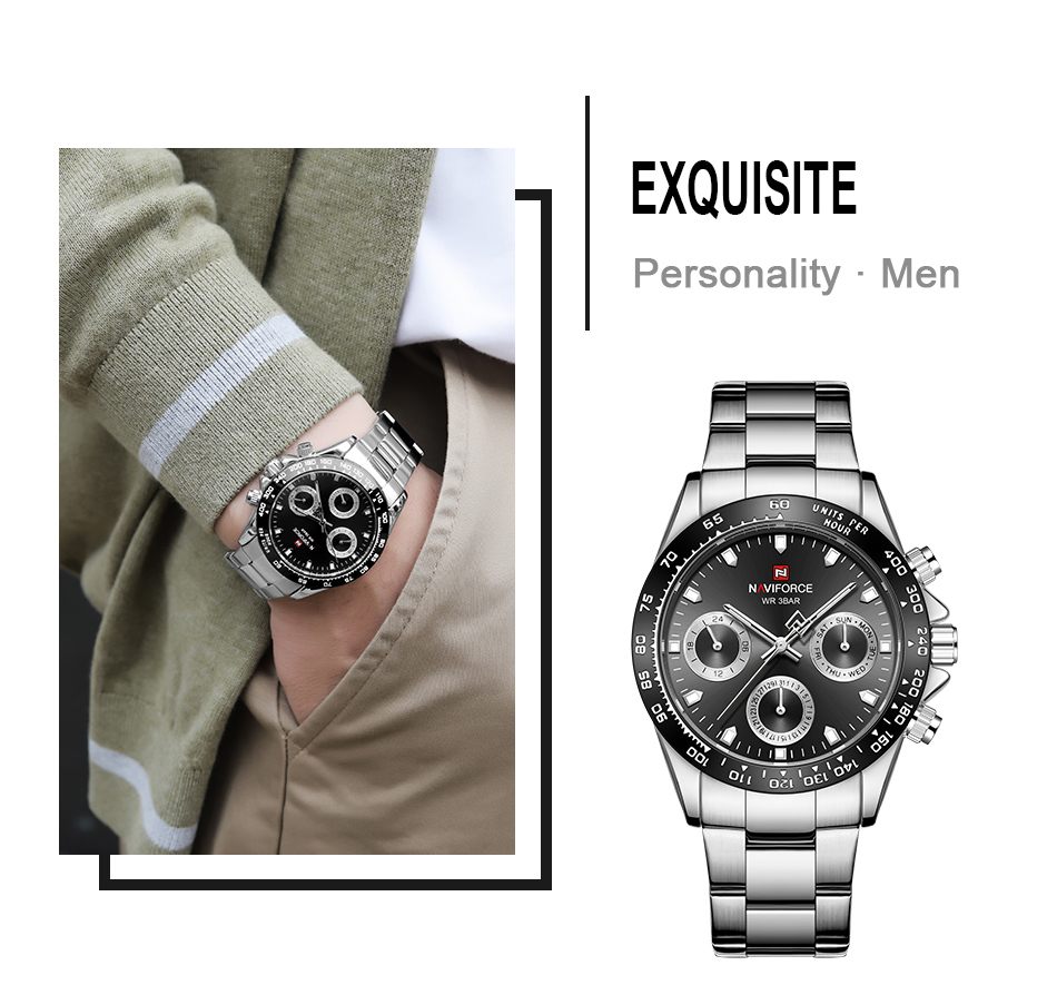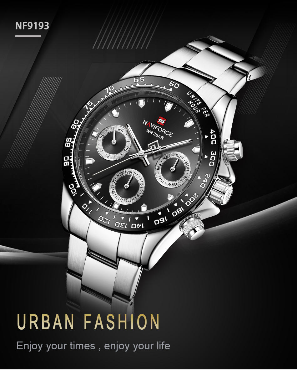 NAVIFORCE Mens/Womens Fashion Multifunction Watches Quartz Analog Stainless Steel Waterproof Watch NF9193