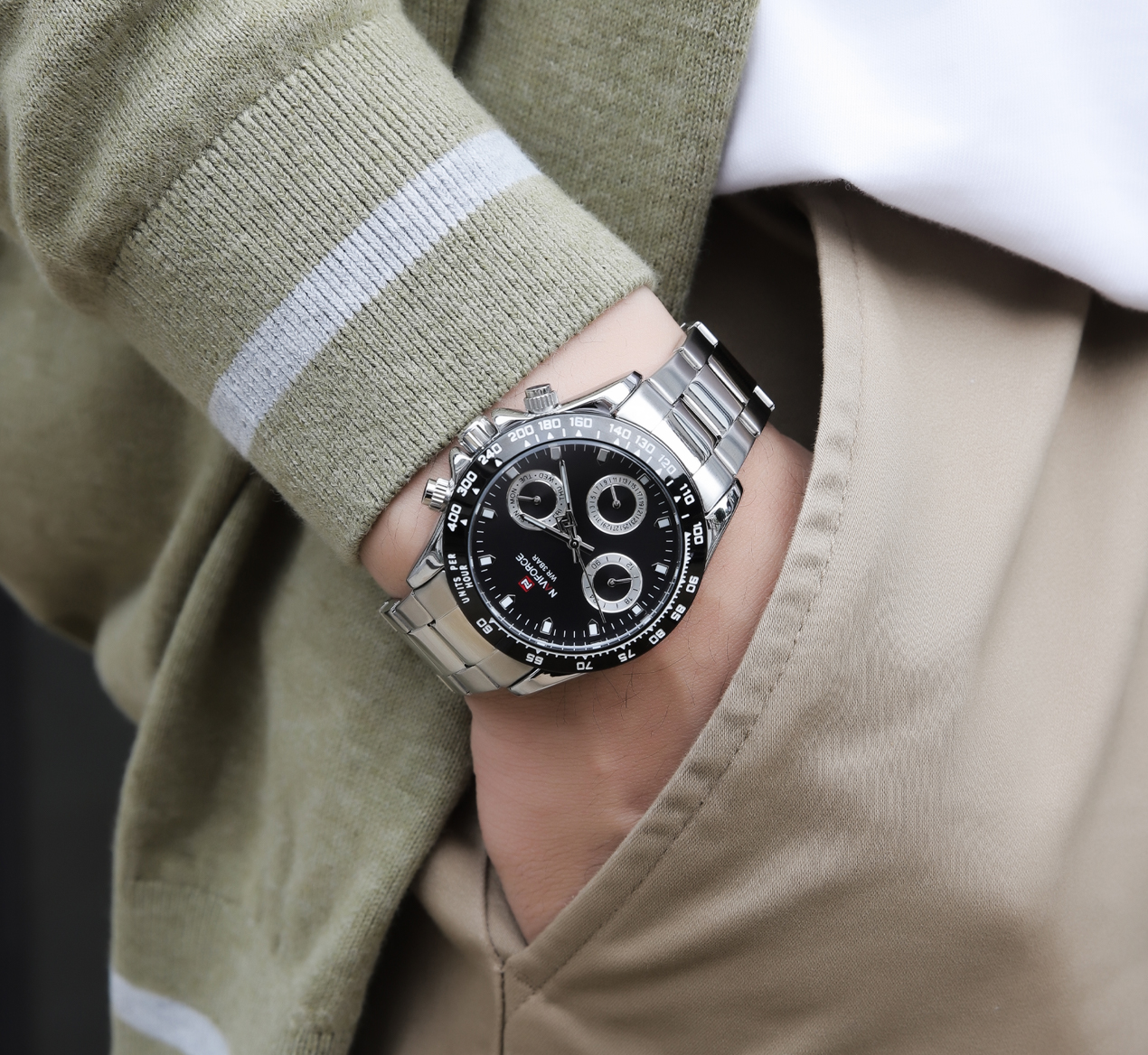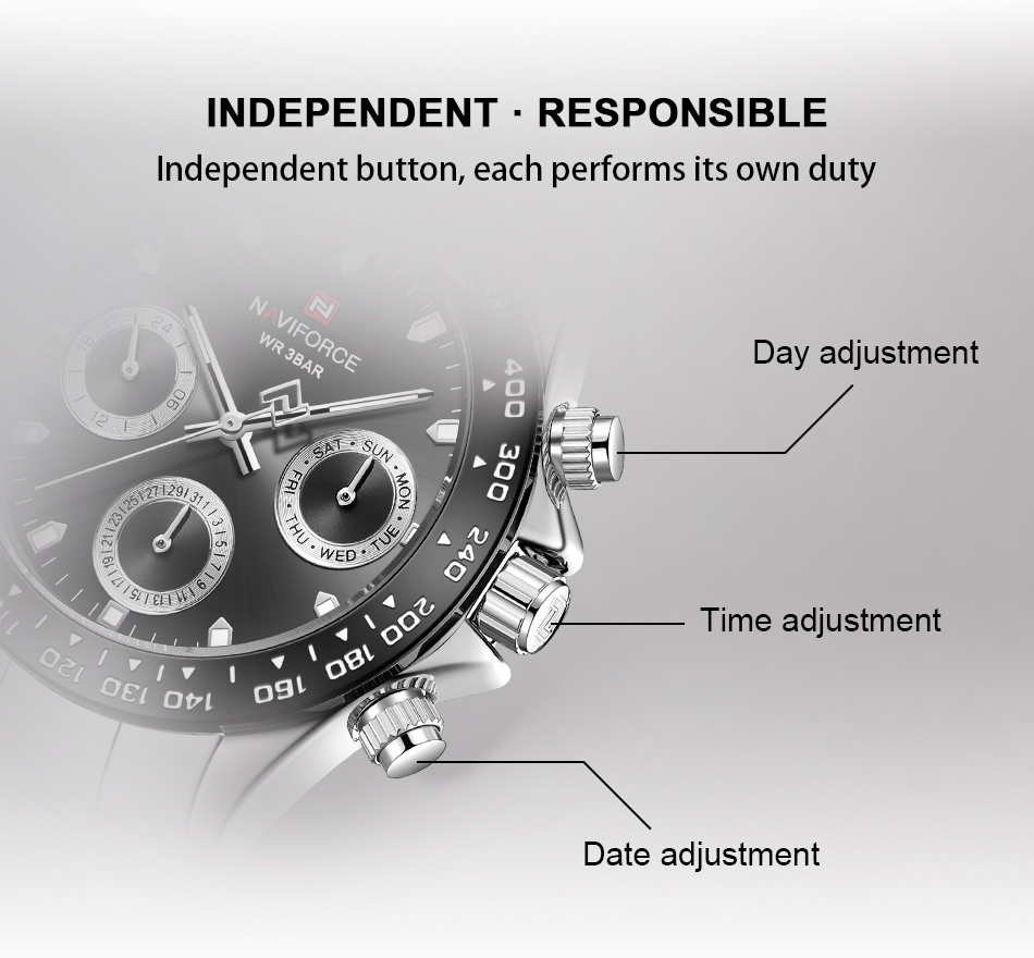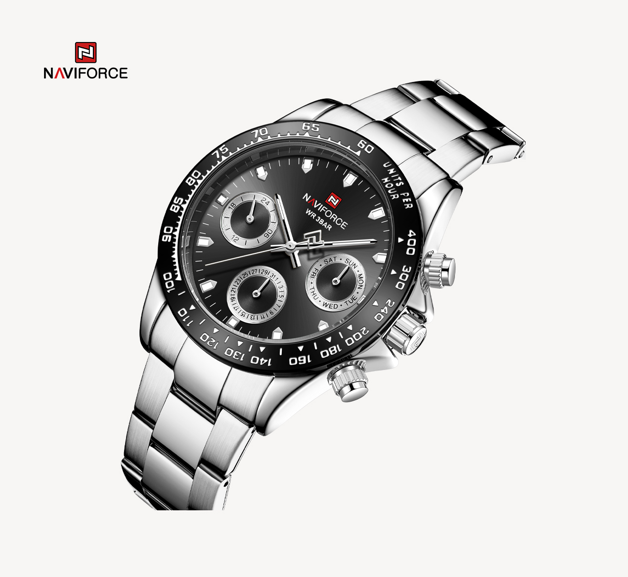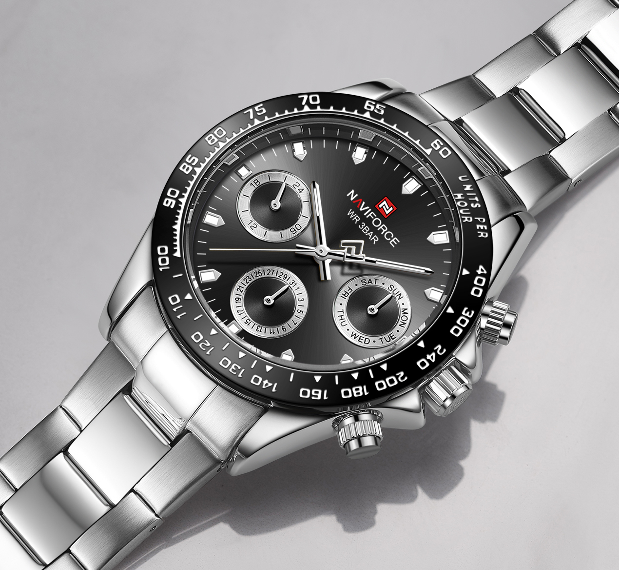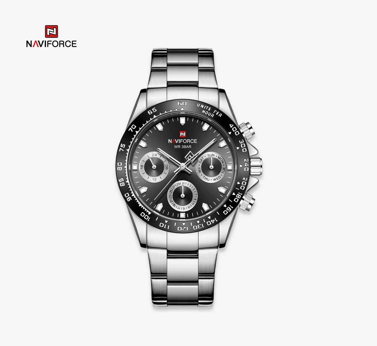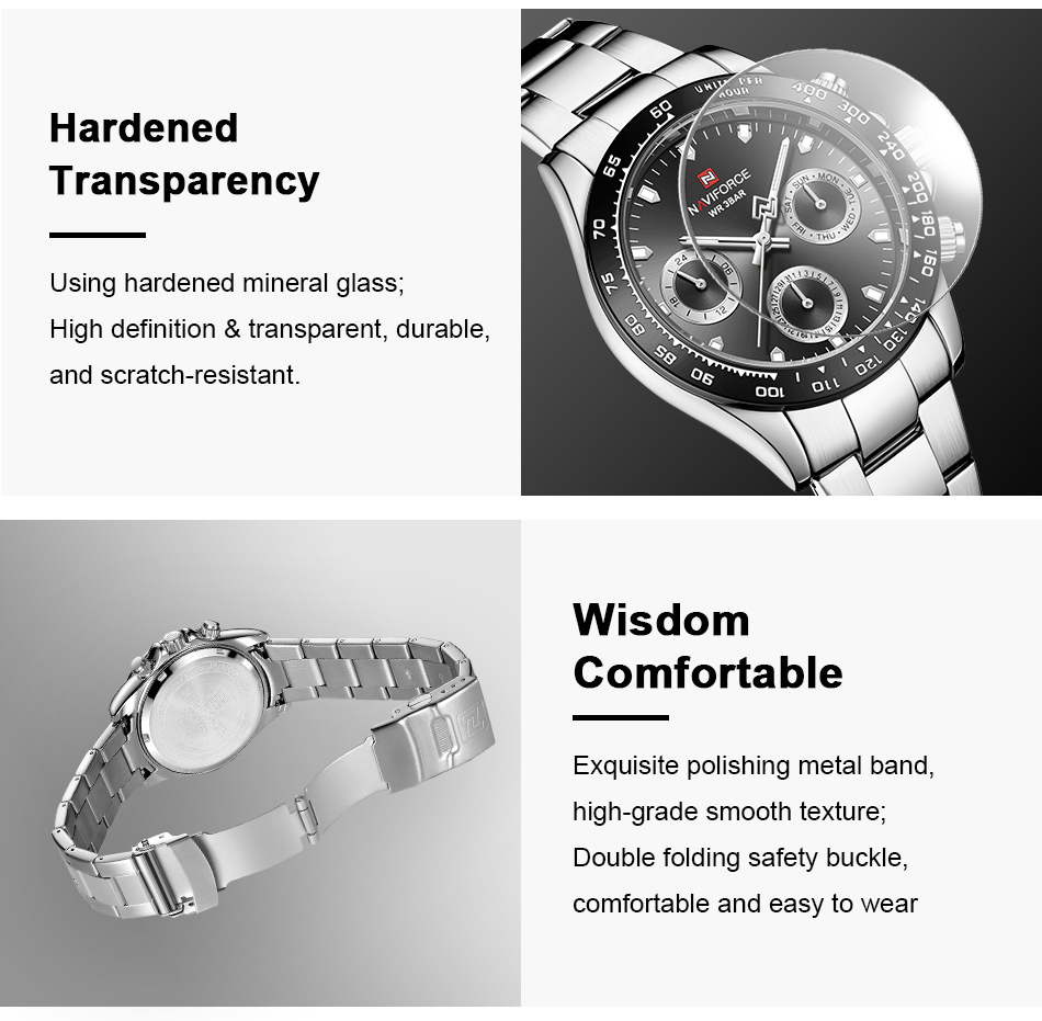 NAVIFORCE Mens/Womens Fashion Multifunction Watches Quartz Analog Stainless Steel Waterproof Watch NF9193